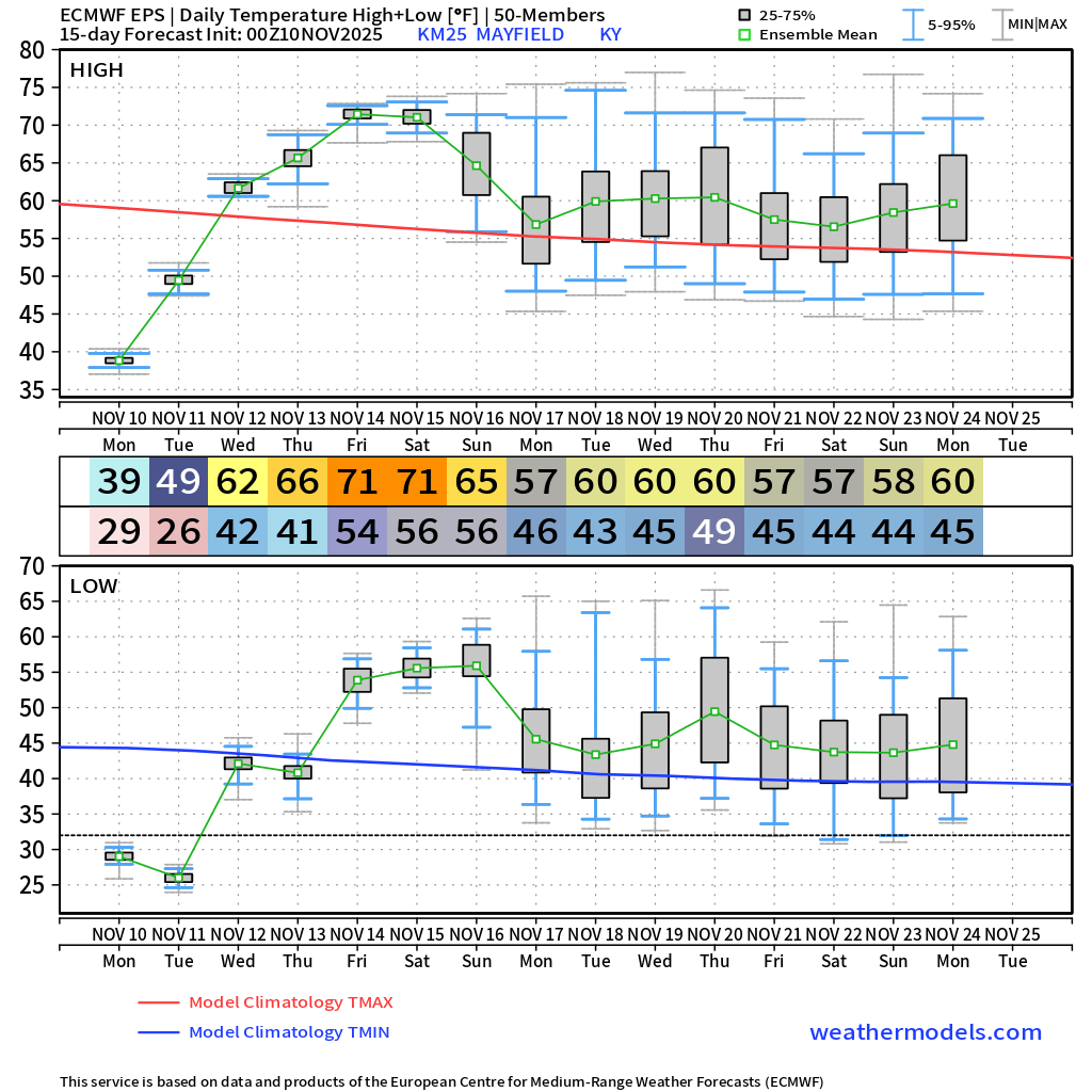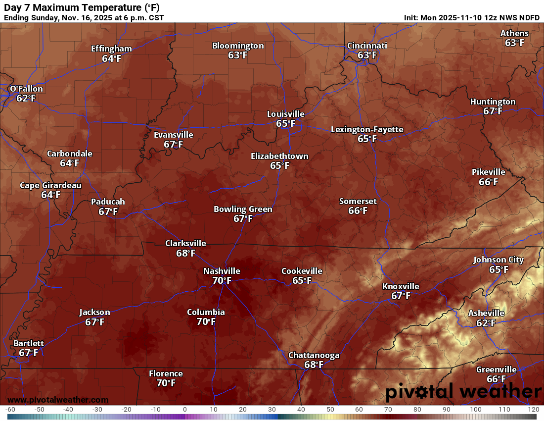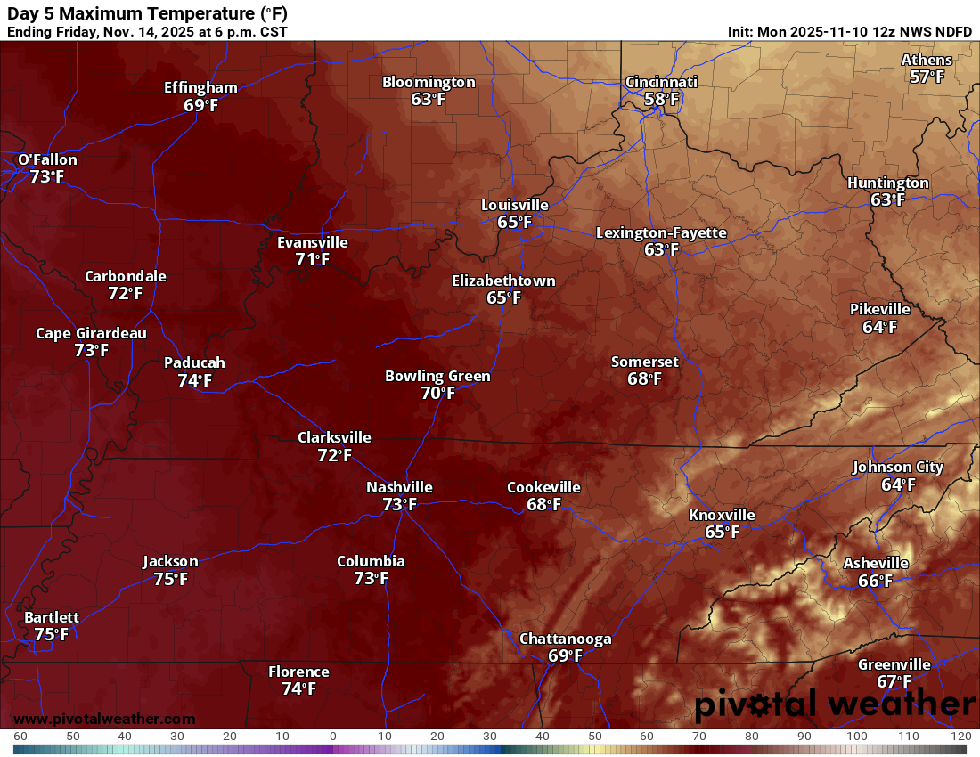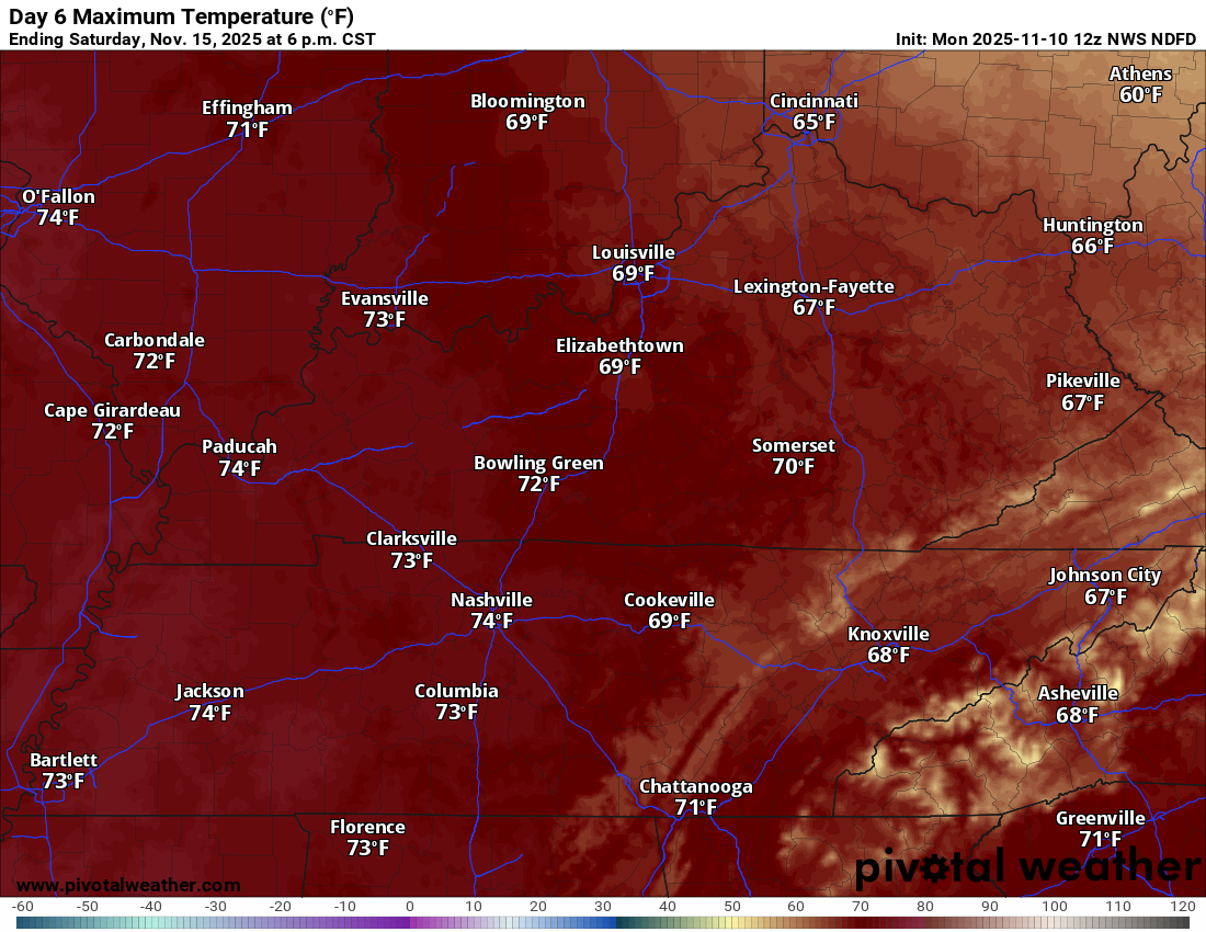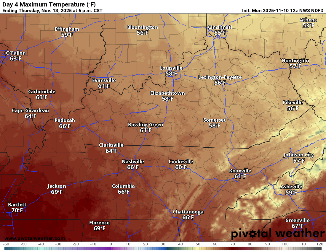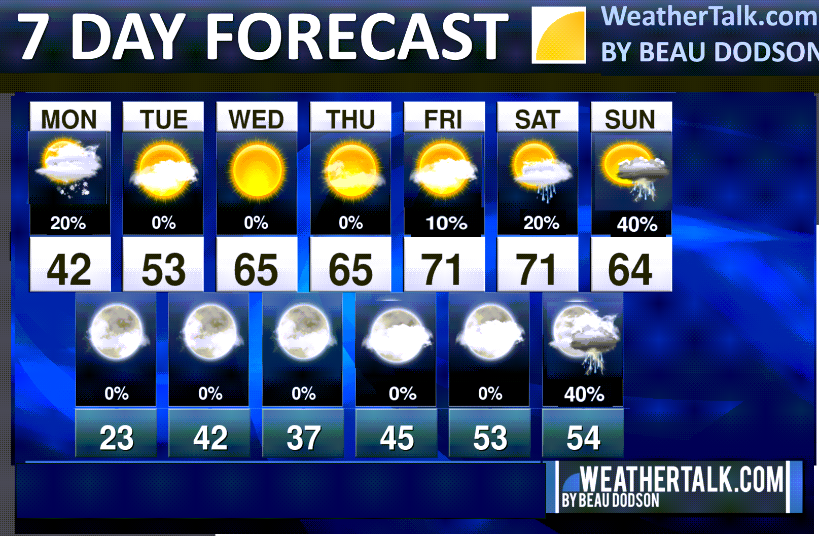 By Friday, we will be back to 70 degrees or above!  A crazy roller-coaster ride of temperatures.  Not all that unusual for autumn.