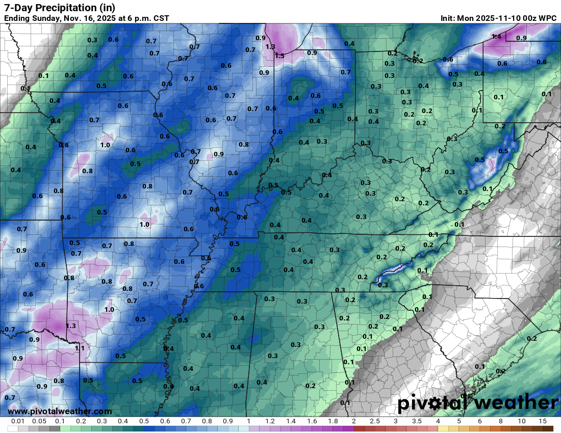 Average precipitation during this time period ranges from 1.00″ to 1.25″