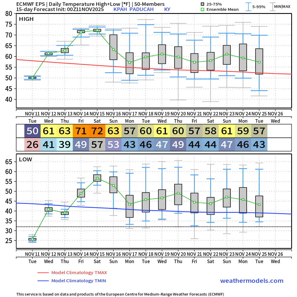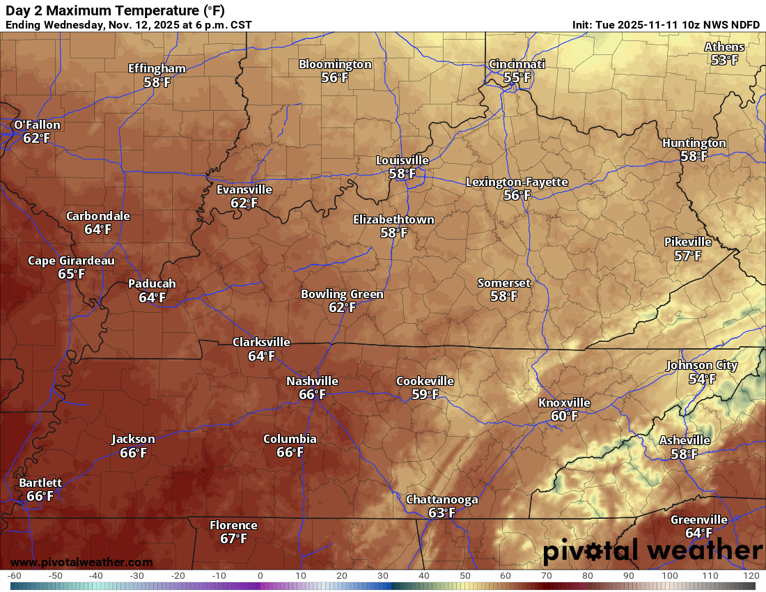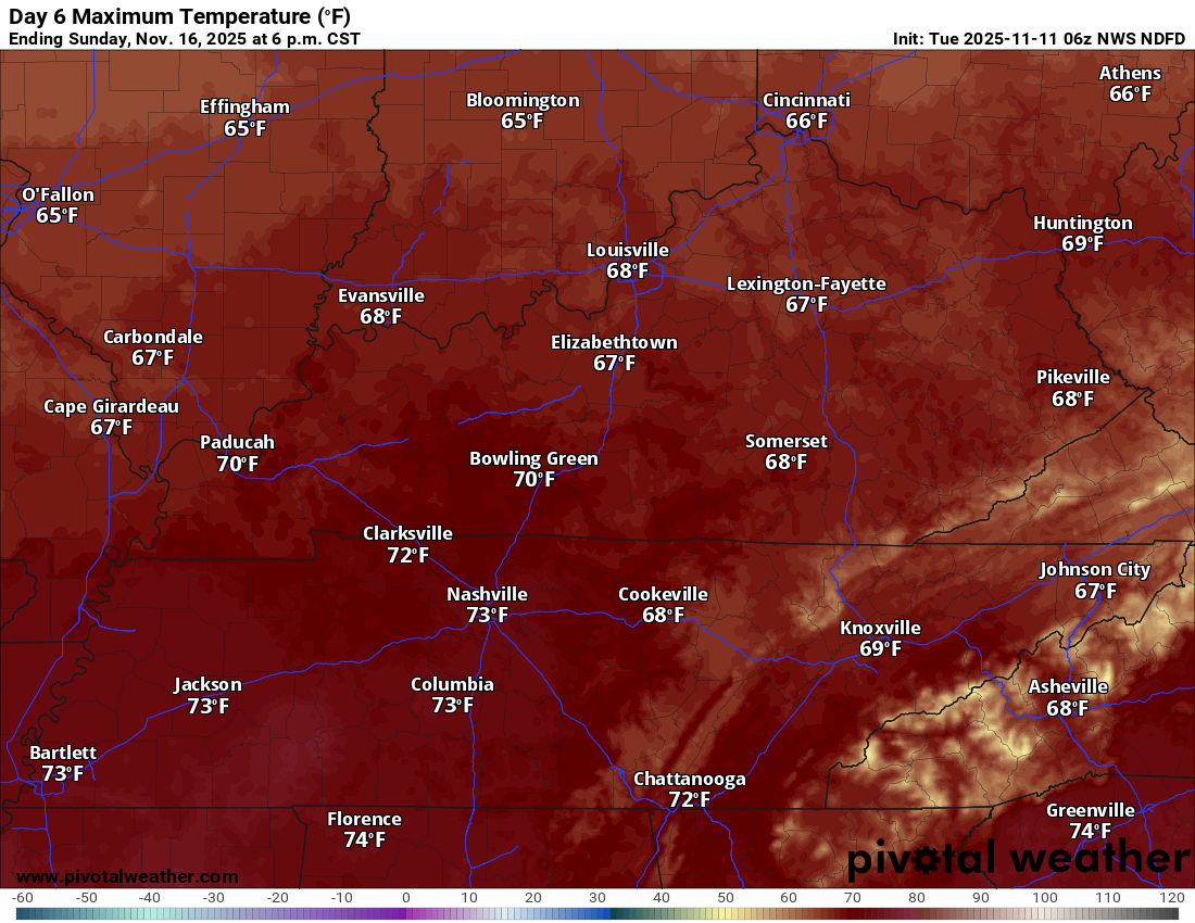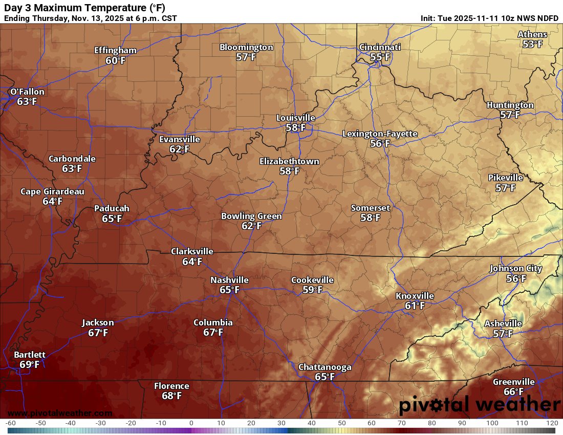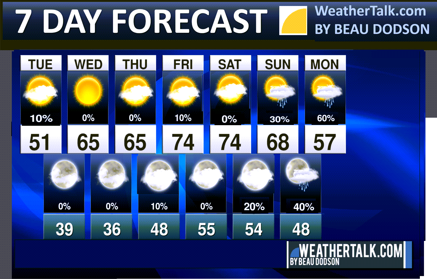 By Friday and Saturday, we will be back to 70 degrees or above! A roller-coaster ride of temperatures. Not all that unusual for autumn.