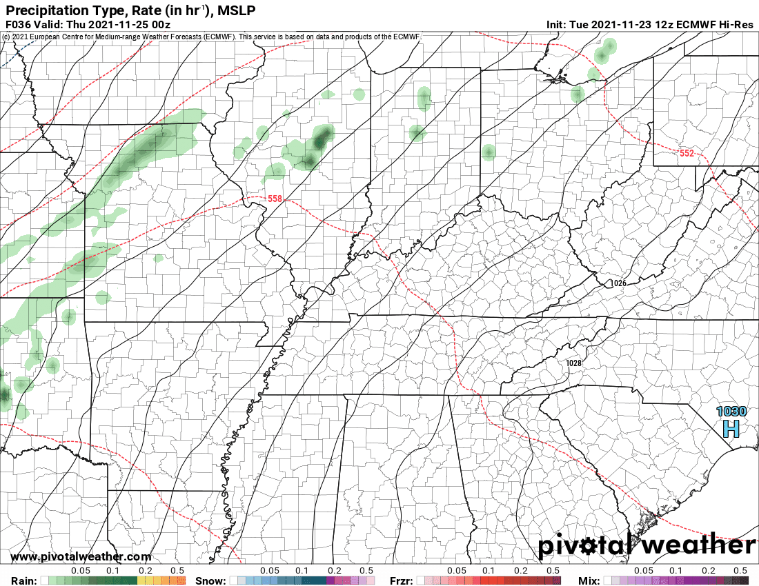 Rain totals from the Wednesday night and Thursday will range from 0.25″ to 0.50″. Locally slightly higher totals are possible.