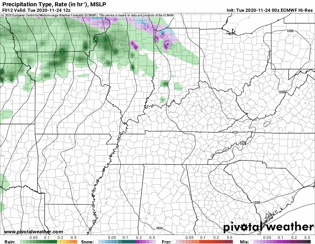 Temperature range: MO Bootheel 40° to 42° MO 35° to 40° South IL 35° to 40° Northwest KY (near Indiana border) 35° to 49° West KY 38° to 40° NW TN 40° to 44°