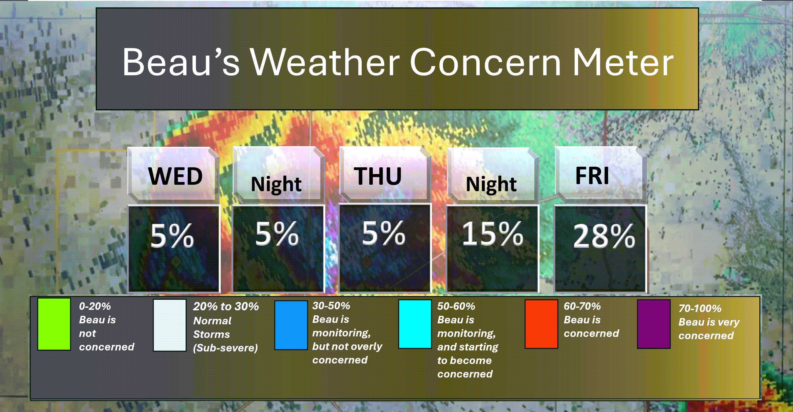 In the worst-case scenario, we will have a low-end severe weather risk on Friday afternoon and evening, primarily for damaging winds and hail.