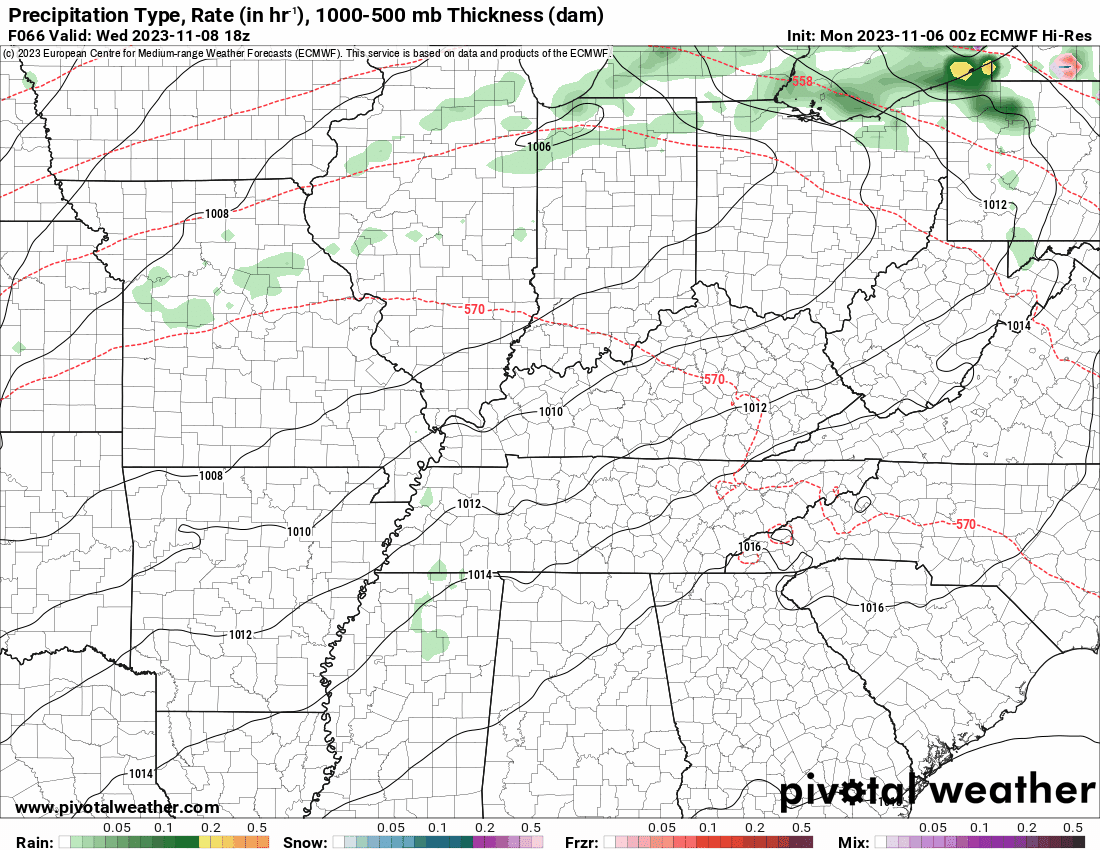 Rain totals of 0.1 to 0.3 north. Then, totals of 0.4 to 0.8 south. Locally higher totals are possible over mainly Kentucky and Tennessee.