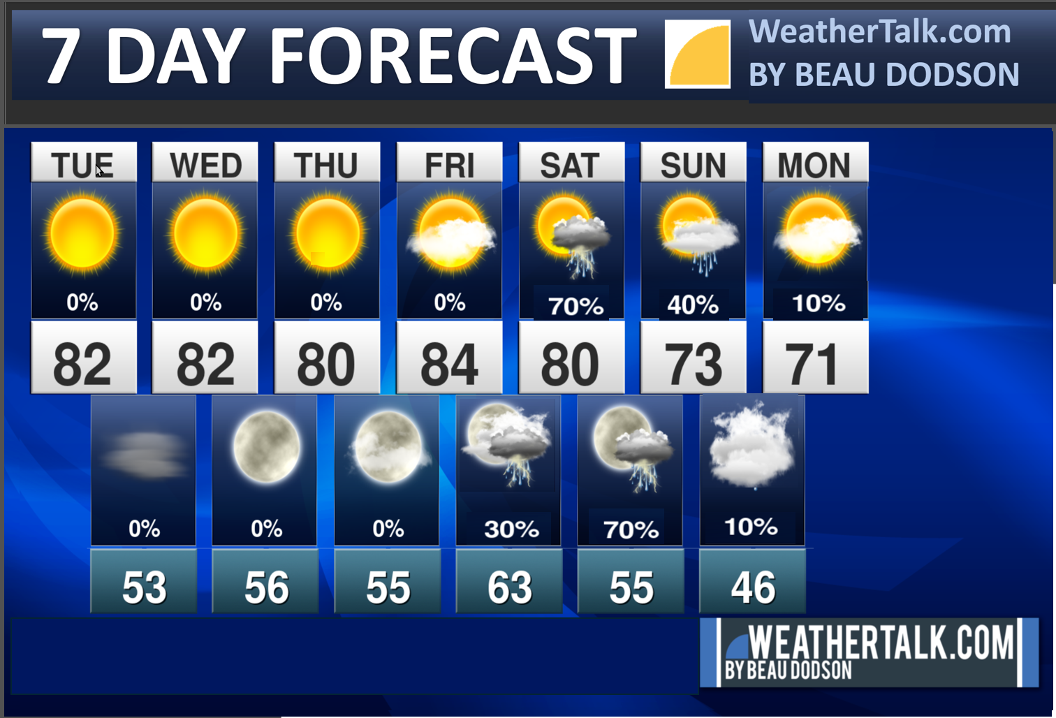 Temperatures will be well above average today through Saturday. That equals highs in the upper 70s to lower 80s through Thursday. Then, low to mid-80s on Friday.