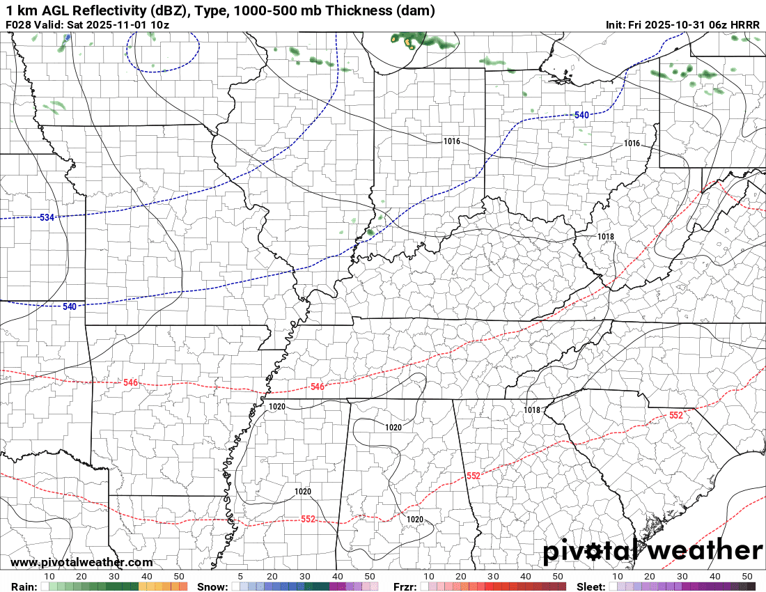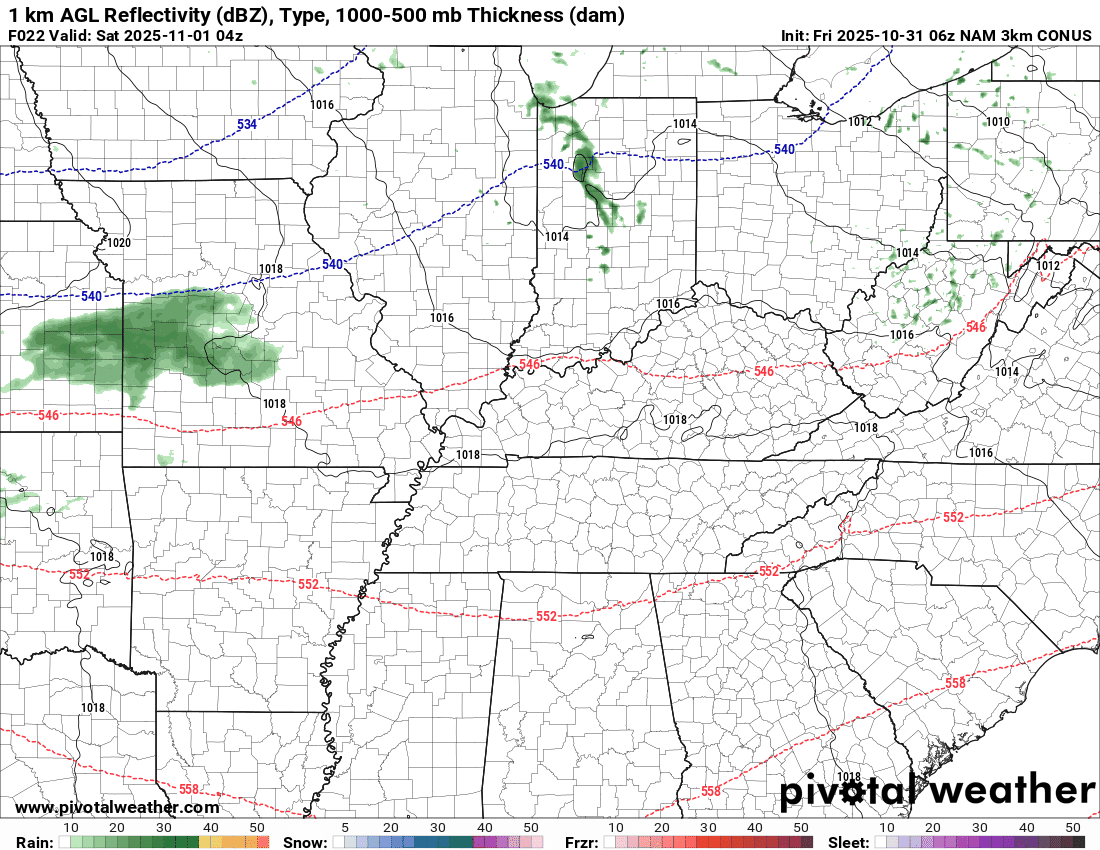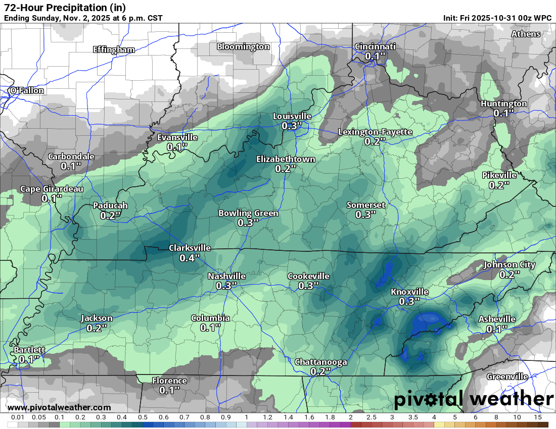 Rain totals will range from nothing or a trace far north to perhaps 0.25″ or so over Kentucky/Tennessee.
