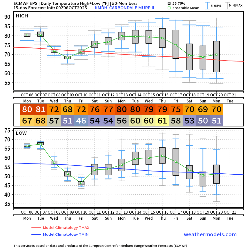 Let’s take a look at the ensemble temperature forecast. This is the mean of 100 models.