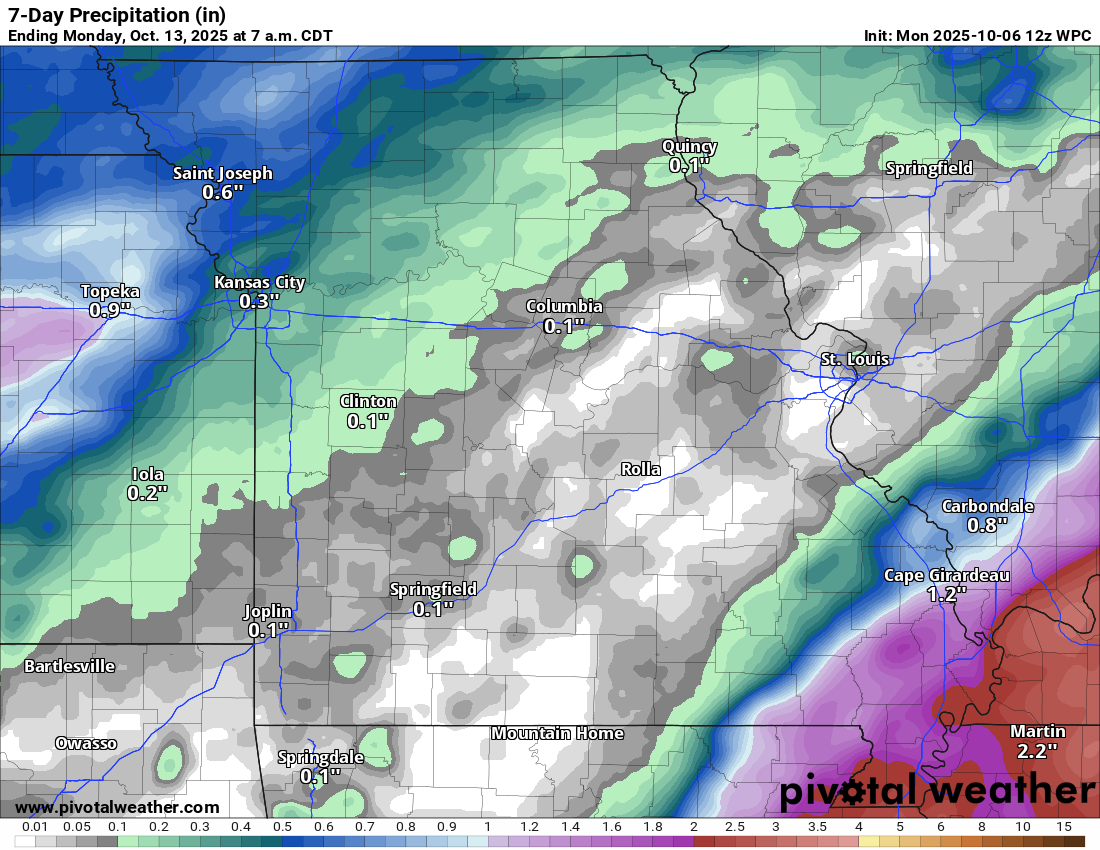 Locally higher totals are certainly possible. The lower totals are likely to be over our far northwest and north counties (Ste. Genevieve County, Missouri, east northeast towards Mt Vernon, Illinois).
