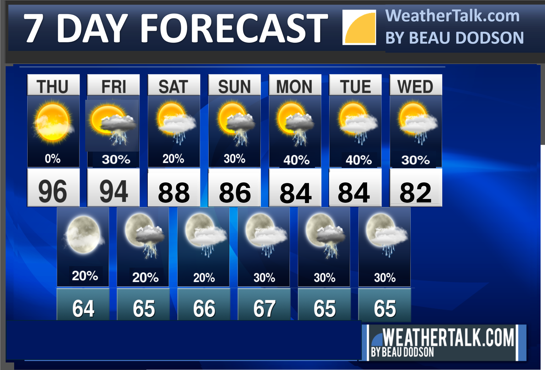 5. Will temperatures rise above 90 degrees? YES. Today and Friday. A lower chance on Saturday.
