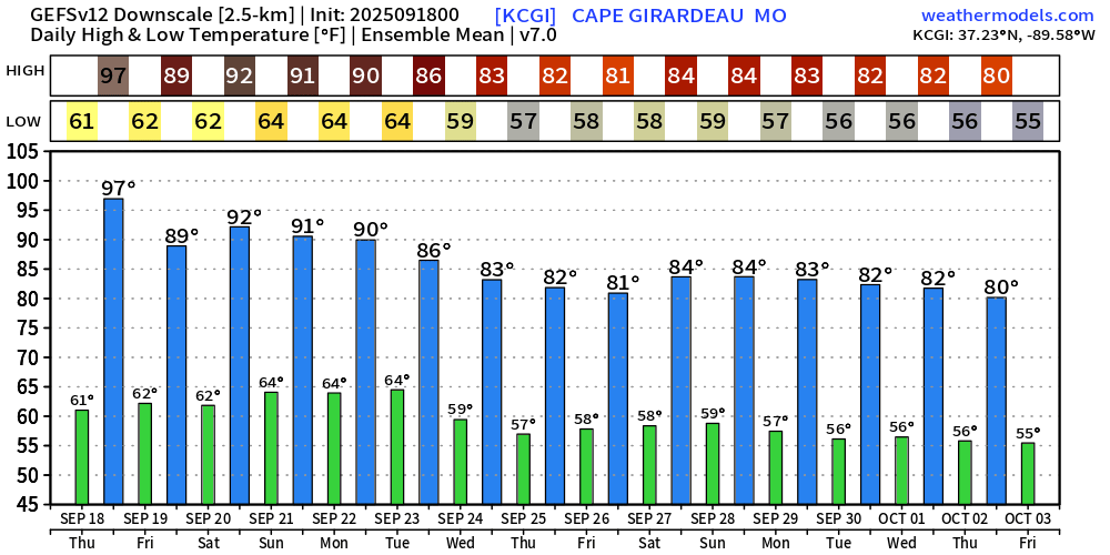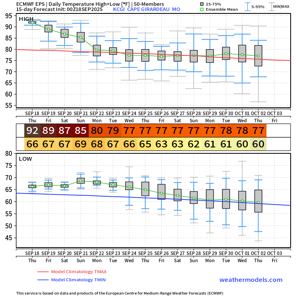 Here are the EC and GFS ensembles. This shows you the anticipated high and low temperatures.