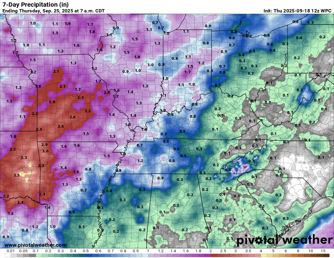 Rain totals, over the next seven days, will vary, but will generally range from 0.40″ to 0.80″. Locally higher totals are likely in thunderstorms.. Those numbers have gone up a bit.