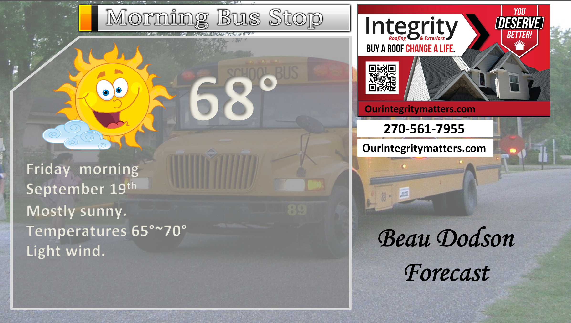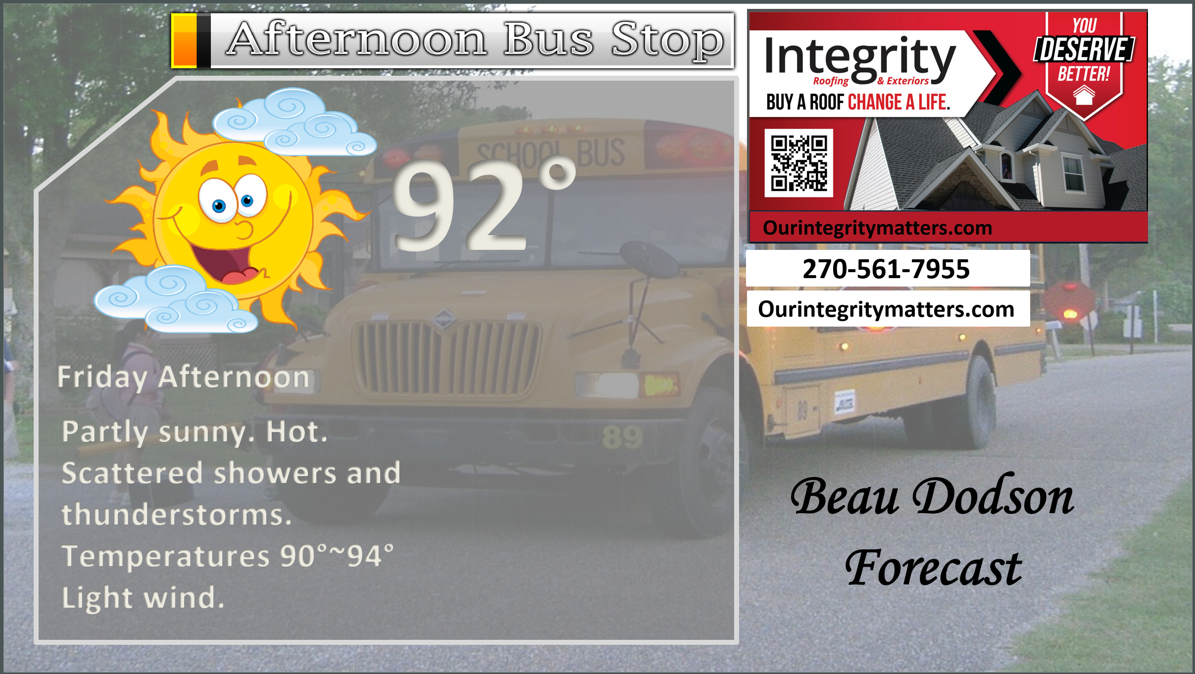 ⛈️ Roof or gutter damage from recent storms? Today’s weather is sponsored by Integrity Roofing. Check out their website at this link https://www.ourintegritymatters.com/