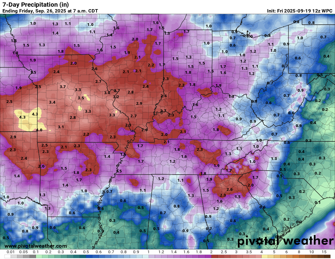 Rain totals, over the next seven days, will vary, but will generally range from 1.00″ to 2.00″.   Locally higher totals are likely in thunderstorms.