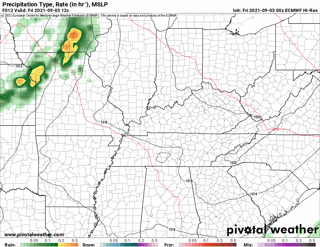 What is the chance of precipitation? MO Bootheel ~ 40% / the rest of SE MO ~ 70% / I-64 Corridor South IL ~ 70% / the rest of South IL ~ 60% / West KY ~ 50% / NW KY (near Indiana border) ~ 60% / NW TN ~ 40%