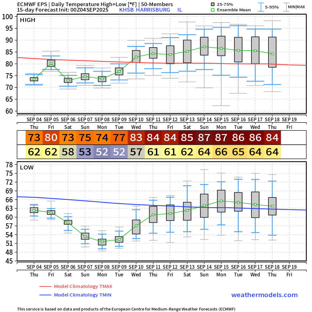 Here is the latest EC ensembles temperature forecast. I picked Harrisburg as a central location. The entire region will be similar. Slightly higher in the far south. Slightly lower north.