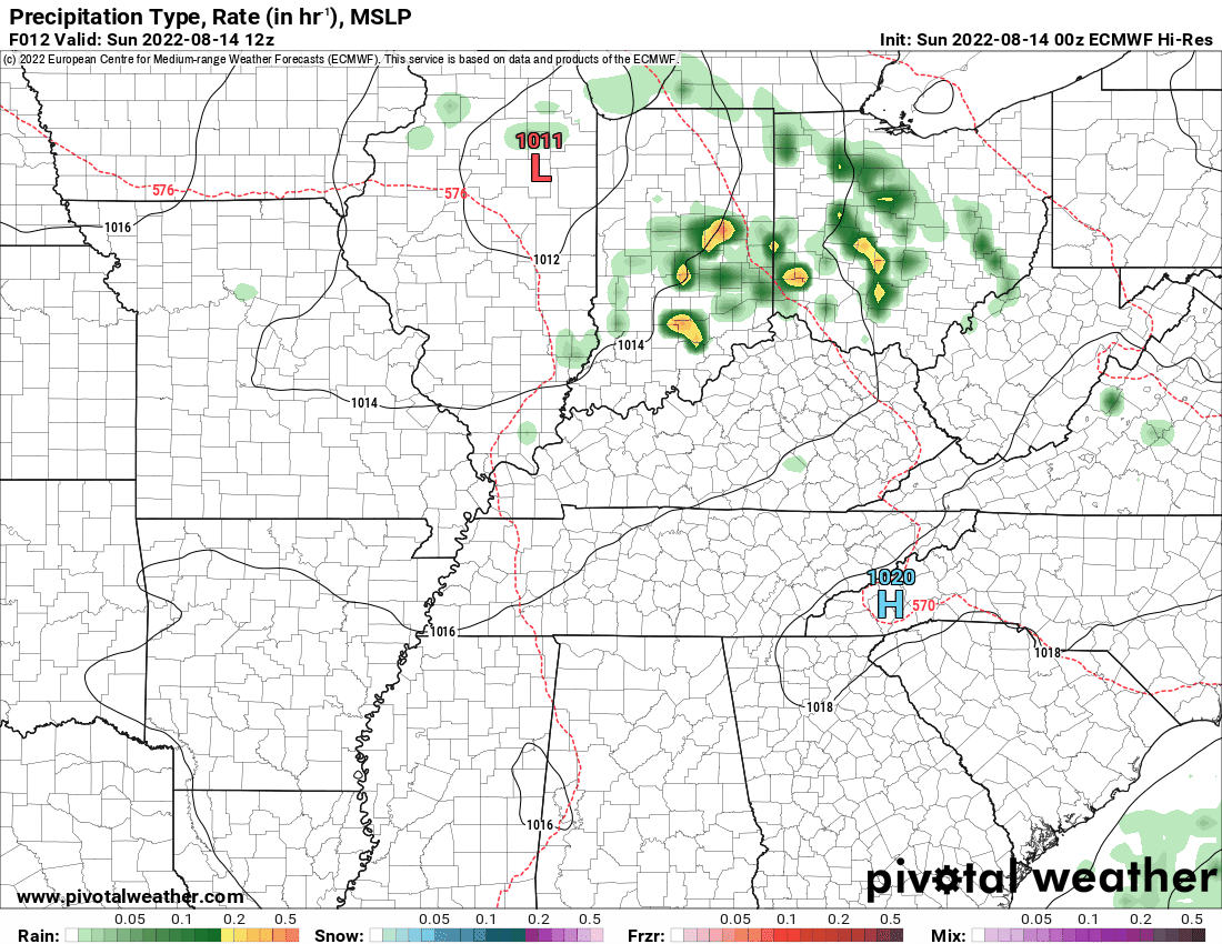 What impacts are anticipated from the weather? None for most. Wet roadways and isolated lightning (northwest Kentucky).