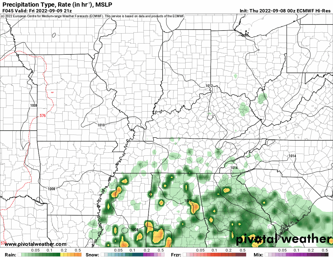 Friday Forecast: Patchy AM fog. Partly sunny. A slight chance of widely scattered showers and thunderstorms. Higher chances during the afternoon. The best chance of precipitation (which isn’t all that great to begin with) will be across Kentucky and Tennessee.