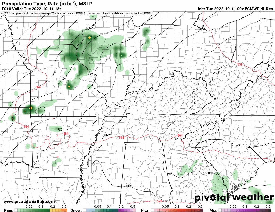What is the chance of precipitation? MO Bootheel ~ 20% / the rest of SE MO ~ 30% / I-64 Corridor South IL ~ 40% / the rest of South IL ~ 20% / West KY ~ 0% / NW KY (near Indiana border) ~ 0% / NW TN ~ 0%