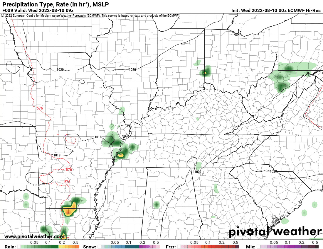 What is the chance of precipitation? MO Bootheel ~ 0% / the rest of SE MO ~ 0% / I-64 Corridor South IL ~ 0% / the rest of South IL ~ 0% / West KY ~ 0% / NW KY (near Indiana border) ~ 0% / NW TN ~ 0%