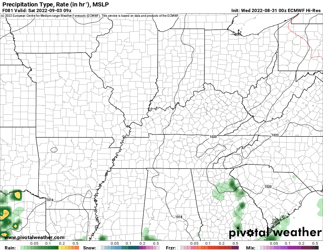 What is the chance of precipitation? MO Bootheel ~ 0% / the rest of SE MO ~ 0% / I-64 Corridor South IL ~ 0% / the rest of South IL ~ 0% / West KY ~ 0% / NW KY (near Indiana border) ~ 0% / NW TN ~ 0%