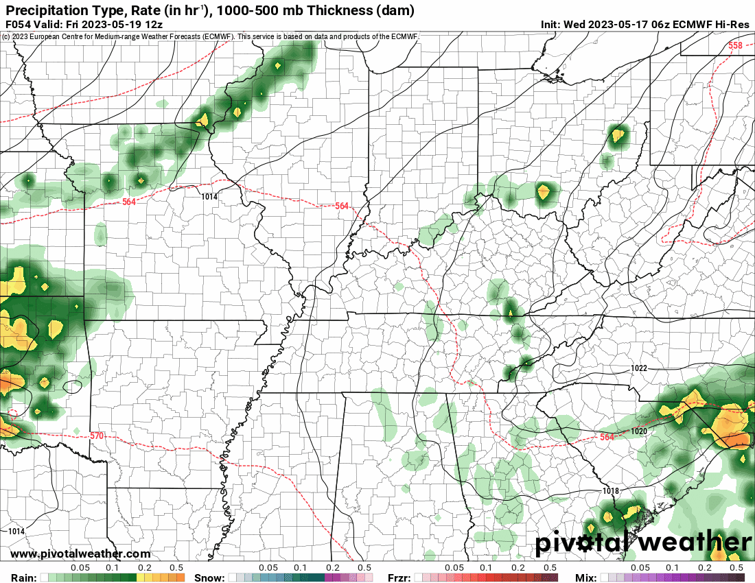 At this time, I have the front moving into the region Friday and Friday night. Showers and thunderstorms will accompany the front. A few of the storms could be locally strong, but widespread organized severe weather appears unlikely. Perhaps a low-end risk.